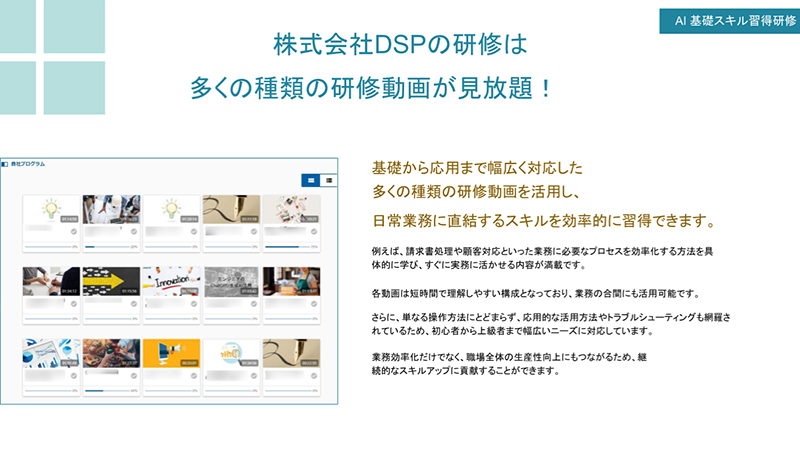 AI活用から専門知識・実務スキルまで、課題に応じた研修で組織の成長を支援します。